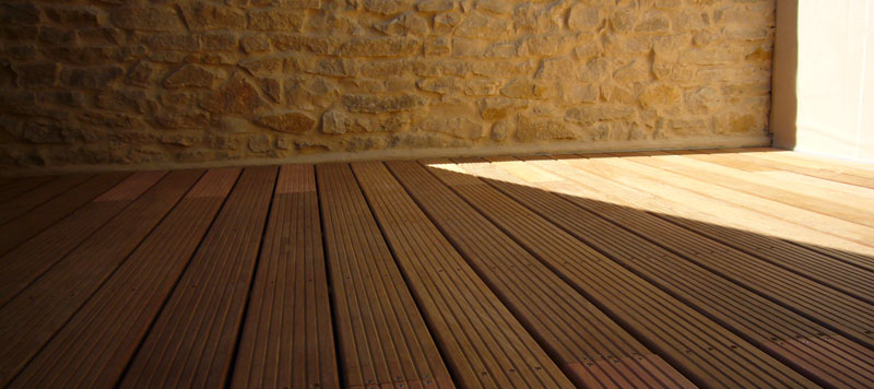 Création d'une Tropezienne dans une maison en pierre - Etanchéité PVC + Platalage bois exotique.
