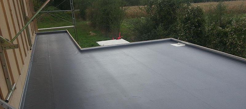 Membrane PVC collée sur support bois - Maison ossature bois (FLAGON)