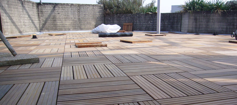 Etanchéité PVC sur support bois avec protection platelage bois sur plots.