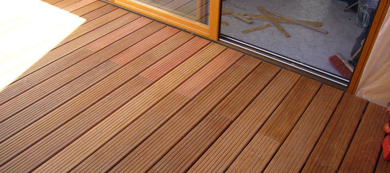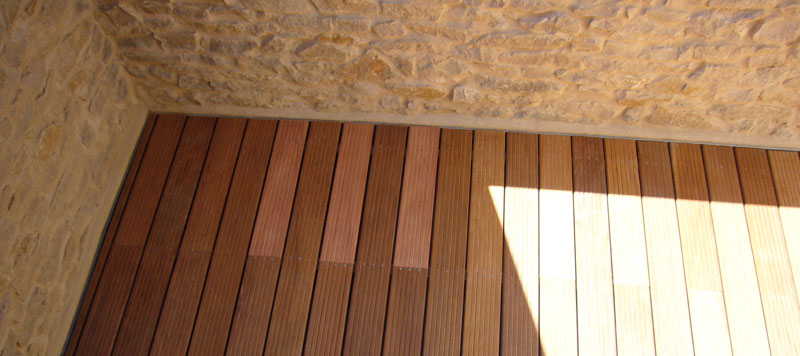 Création d'une Tropezienne dans une maison en pierre - Etanchéité PVC + Platalage bois exotique.