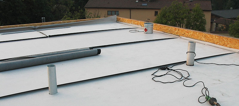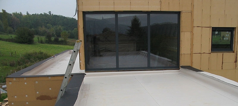 Membrane PVC collée sur support bois - Maison ossature bois (FLAGON)