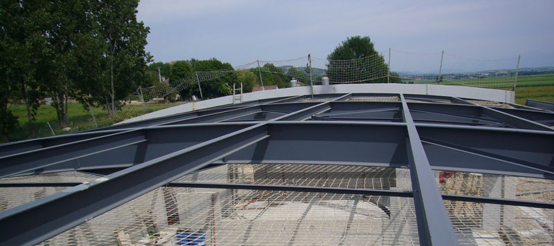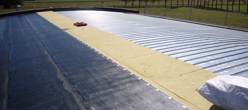 Détail du projet : Bac acier support d'étanchéité + Isolation laine minérale + Bicouche antiracines + végétalisation par bacs précultivés.